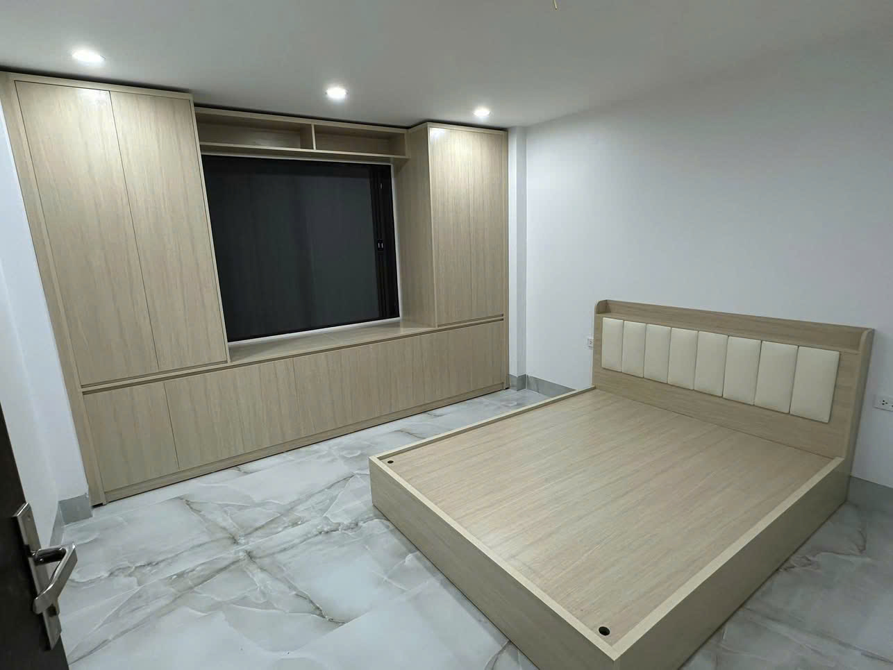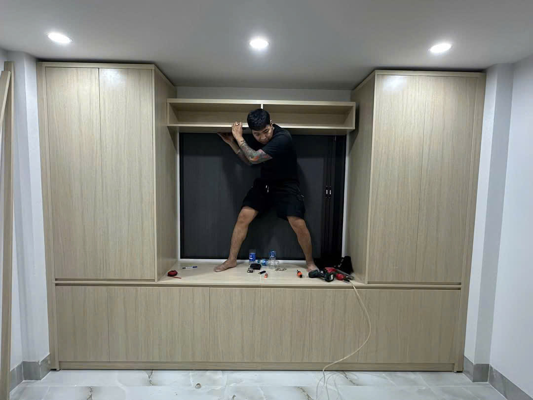 Bộ giường tủ liền kệ tivi hiện đại mang phong cách tối giản nhưng vô cùng tiện nghi, phù hợp cho không gian phòng ngủ hiện đại. Với thiết kế gọn gàng, chất liệu cao cấp và màu gỗ sáng tự nhiên, sản phẩm giúp phòng ngủ thêm phần sang trọng, thoáng đãng và tiện lợi.