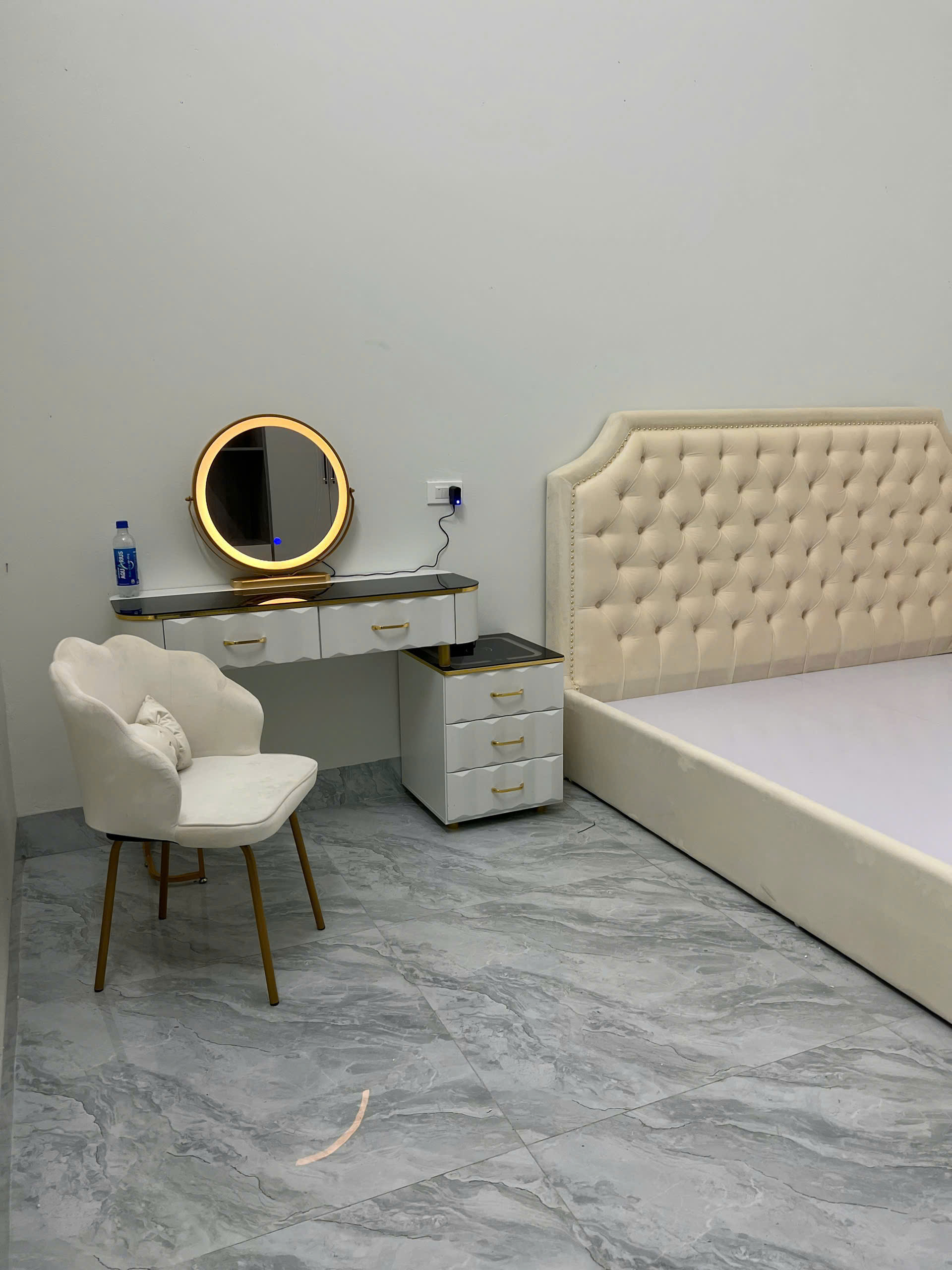 Giường và bàn phấn bọc nỉ tân cổ điển
