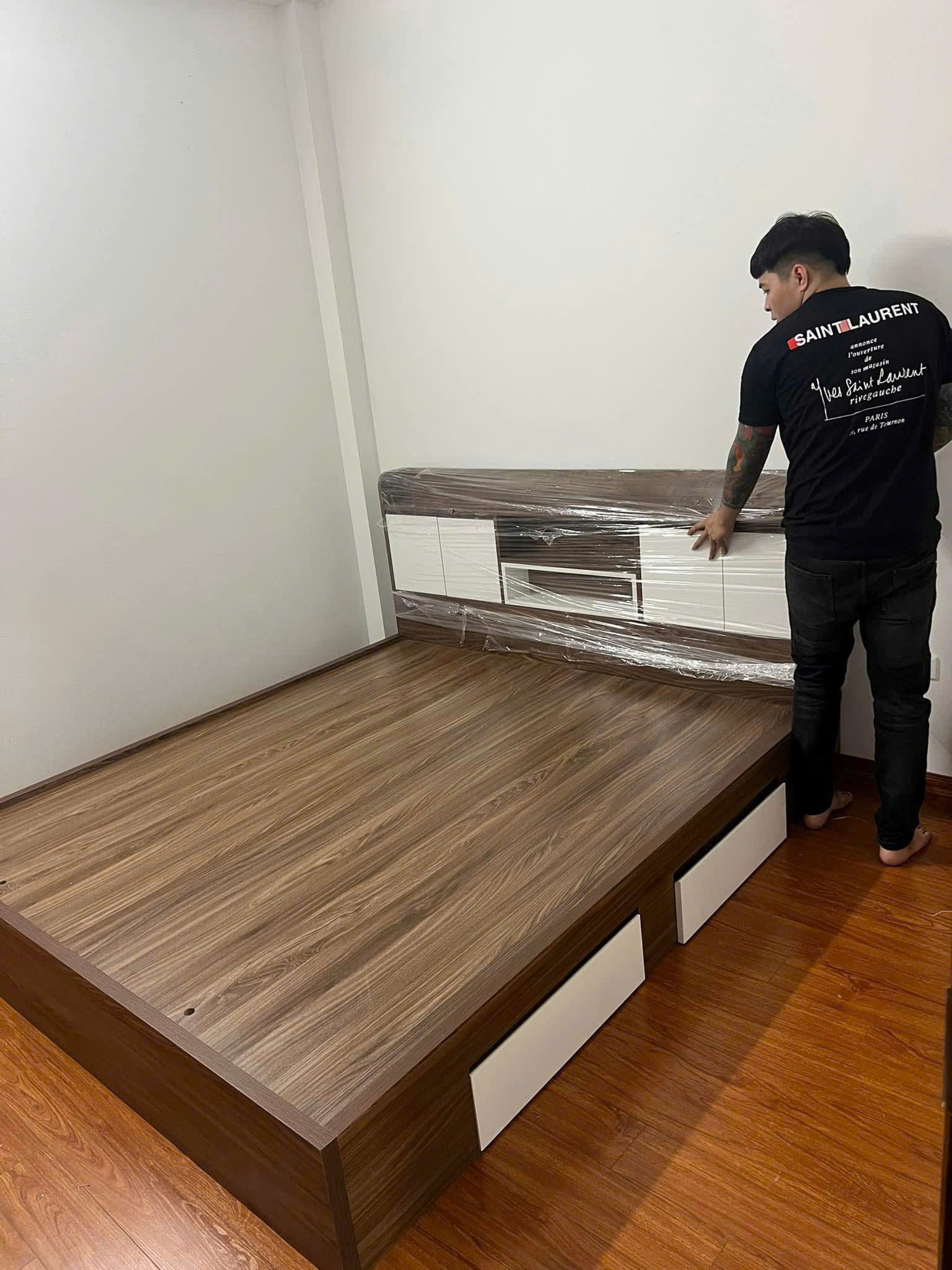 Giường ngủ 1.6m gỗ mdf vân gỗ công nghiệp nhiều ngăn