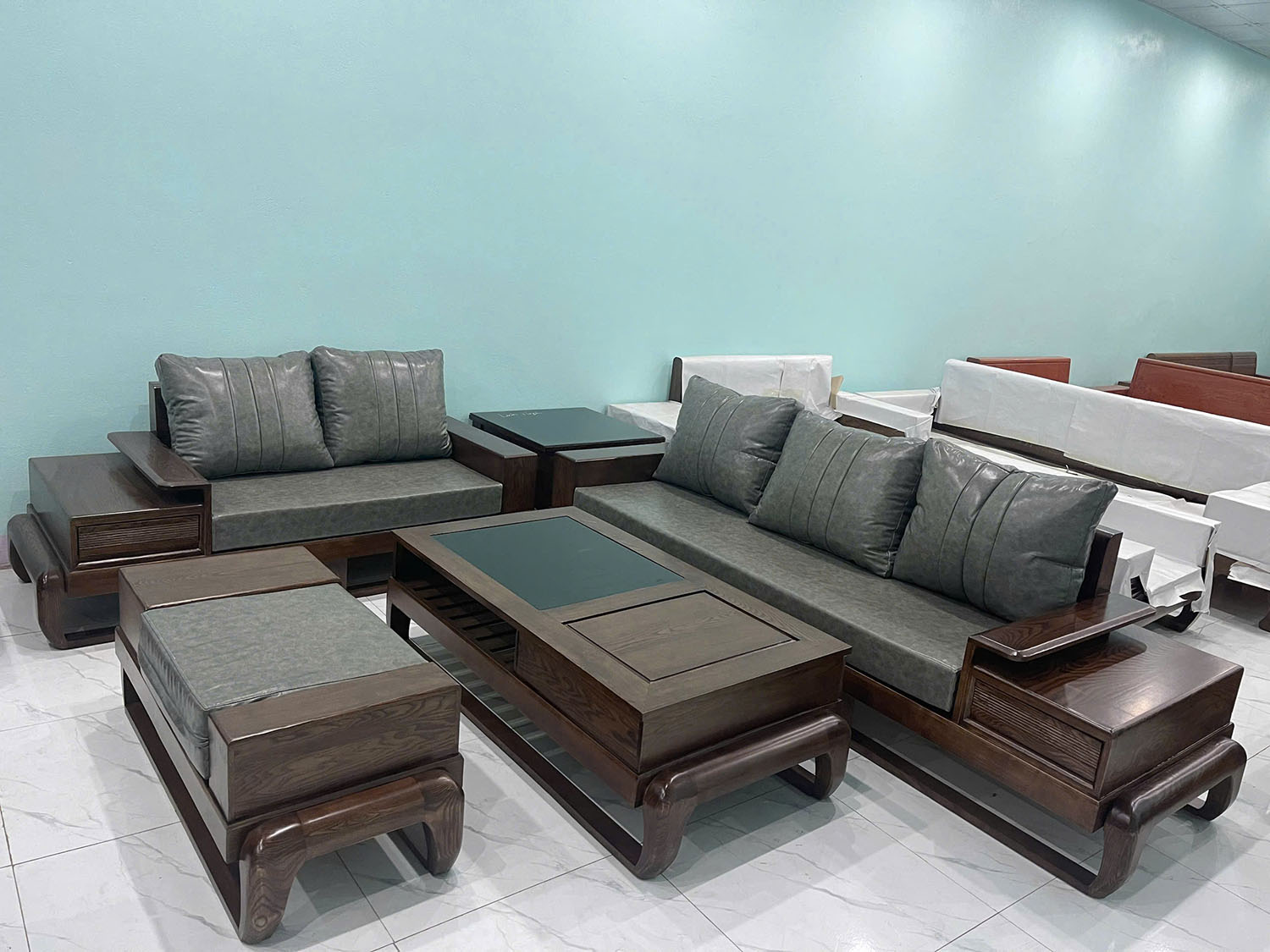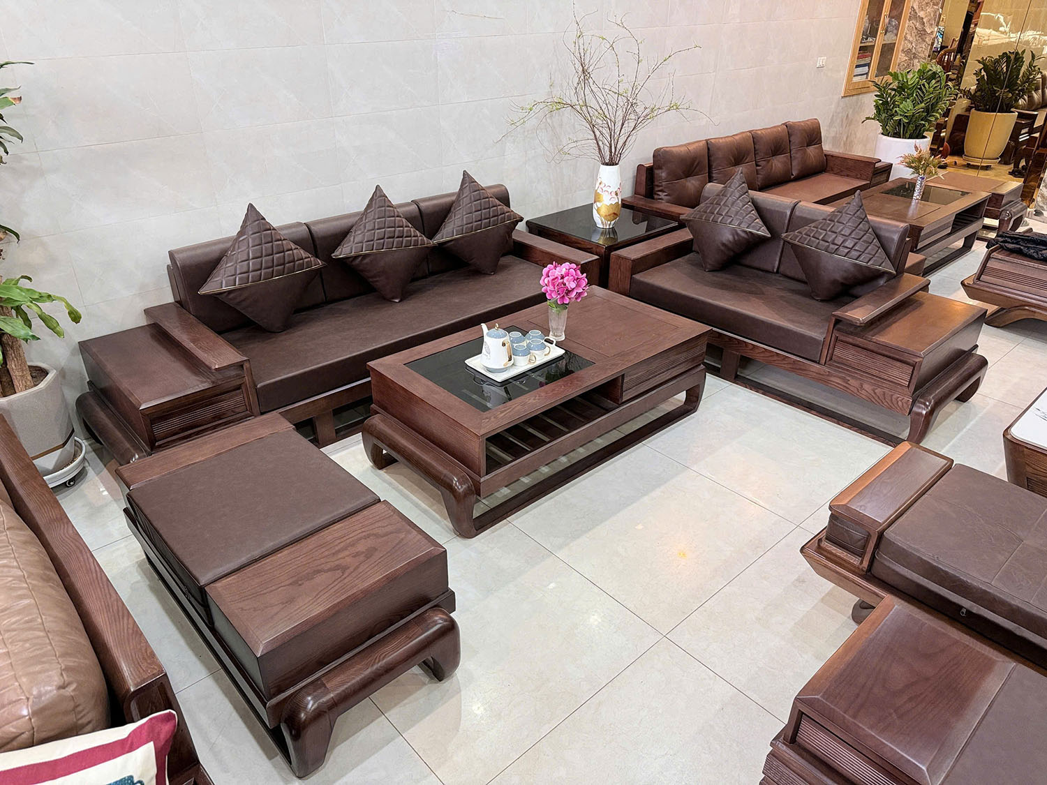 Bộ sofa được chế tác hoàn toàn từ gỗ sồi Nga tự nhiên đã qua xử lý kỹ lưỡng, chống cong vênh và mối mọt.