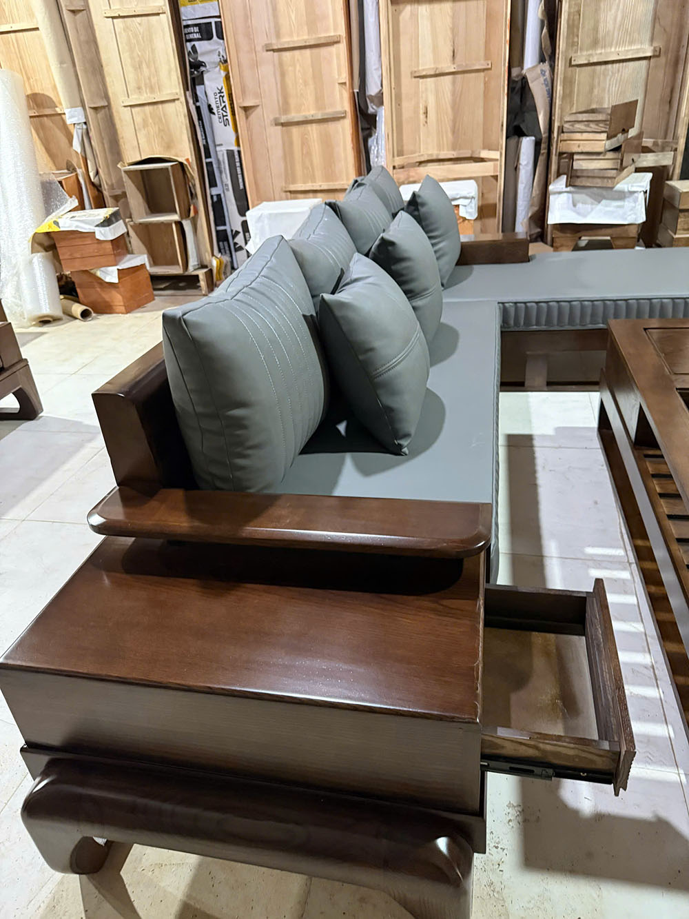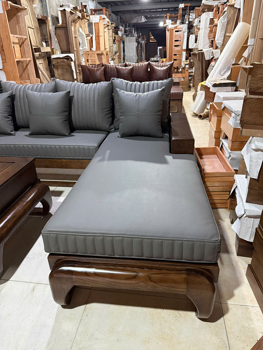 Sofa gỗ sồi Nga Kiểu dáng chữ L, chân dùi gà